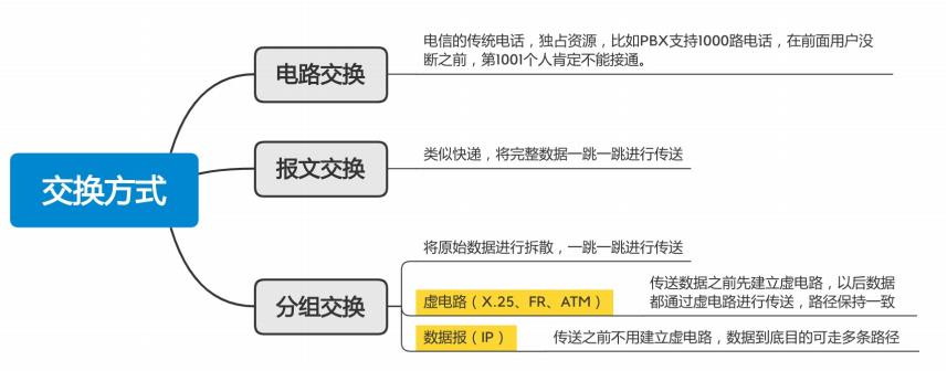 按照交换技术:电路交换网络、报文交换网络和分组交换网络。