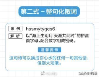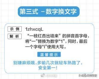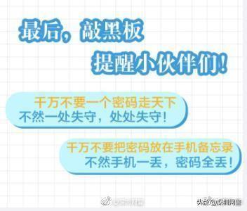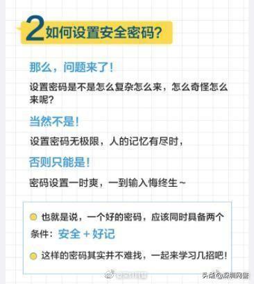 你的密码安全吗?手机锁屏密码、APP登录密码、转账支付密码…这么多密码怎么记呢,你有什么小诀窍吗? 拿深网君来说,我的密码设置小秘诀是“平台简拼+其他密码”,这样设置的密码再也不用担心被盗和遗忘啦!快来看今日教你如何设置多样复杂却又好记的密码↓↓