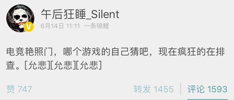 电竞艳照门的起因是@午后狂睡_Silent发送的一条微博。
