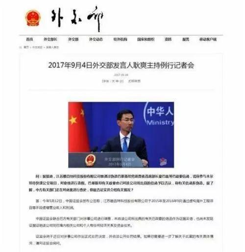 据了解,除了伪造境外工程项目之外,上市公司甚至胆大到伪造海外业务往来函件,最终惊动外交部,证实其造假行为。2017年9月4日,外交部发言人耿爽在例行记者会上证实,经证监会联合巴基斯坦有关部门调查,该公司所出具的有关巴政要的信函系伪造,也尚未发现证据证明,雅百特同巴境内任何公司和个人有经济关系及资金往来。