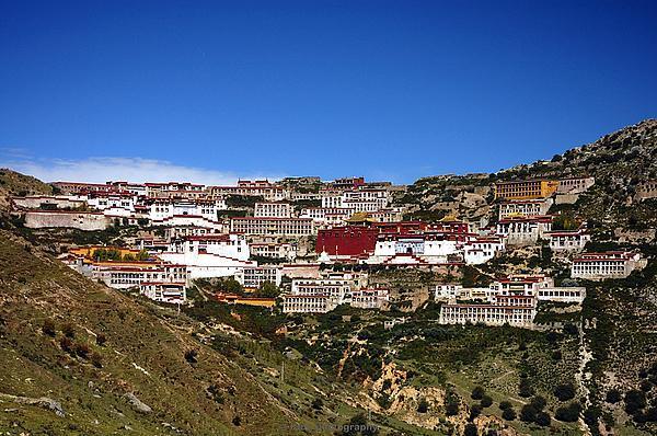 在西藏达孜区境内拉萨河南岸旺古尔山坳。明水乐七年(1409年)由西藏佛教格鲁派(黄教)创始人宗喀巴兴建。为格鲁派第一座寺院。群楼重迭,外观巍峨。全寺分夏孜、绛孜两个扎仓(经学院)。僧人定额为三千三百人。与哲蚌寺、色拉寺合称三大寺。宗喀巴的法座继承人、历世格鲁派教主甘丹赤巴即居于此寺中。寺内所藏明代以来的文物甚多,有保存宗喀巴和甘丹赤巴等遗体的灵塔九十余座。