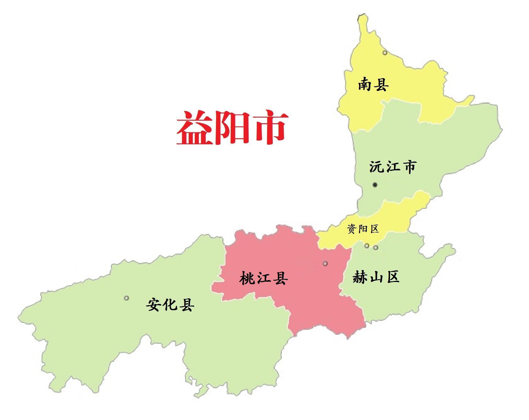 全市总面积12320平方千米,下辖2个区(资阳区、赫山区)、3个县(南县、桃江县、安化县),代管1个县级市(沅江市)。截至2022年,常住人口379.36万人 。