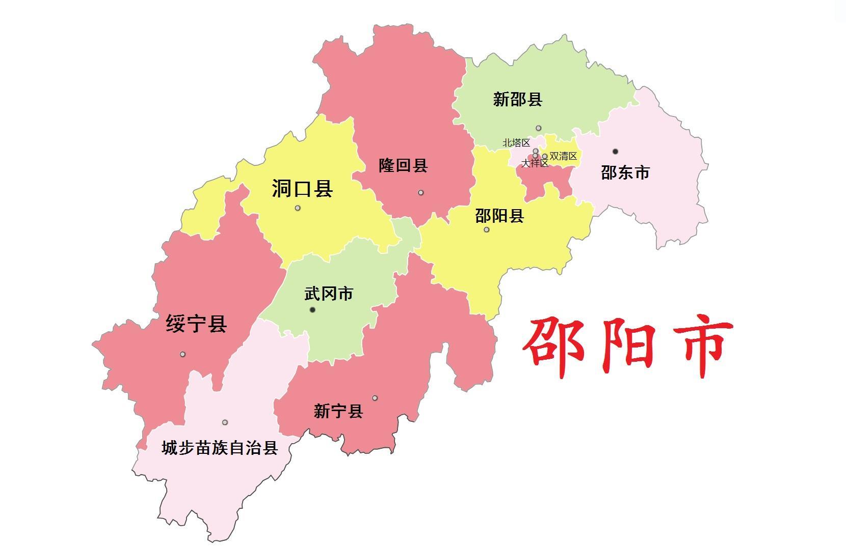 全市总面积20822平方千米,辖3个市辖区(大祥区、双清区、北塔区)、6个县( 邵阳县、新邵县、绥宁县、新宁县、隆回县、洞口县 )、1个自治县(城步苗族自治县),代管2个县级市(武冈市、邵东市)。截至2022年底,全市常住人口641.78万人。