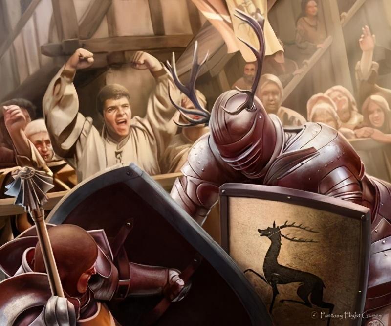 劳勃叛乱时,没有参加狼鱼鹰鹿大联姻的提利尔家族成了坦格利安的支持者,提利尔大军与雷德温舰队联手围困风息堡;与坦格利安已经绑定的马泰尔家也派兵加入到雷加一方;而与各方联姻未果,并且有人质詹姆被捏在伊里斯手中的泰温·兰尼斯特,此刻只好两不相帮。