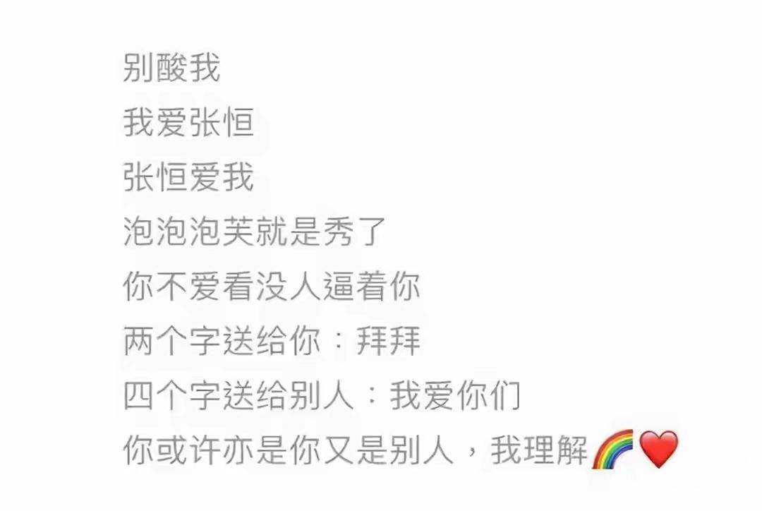 8月,张恒也首次公开承认两人的恋情,还郑重其事地维护女友及其粉丝。