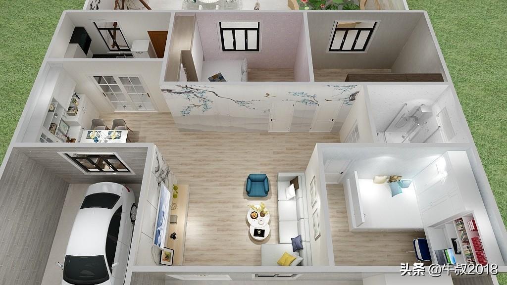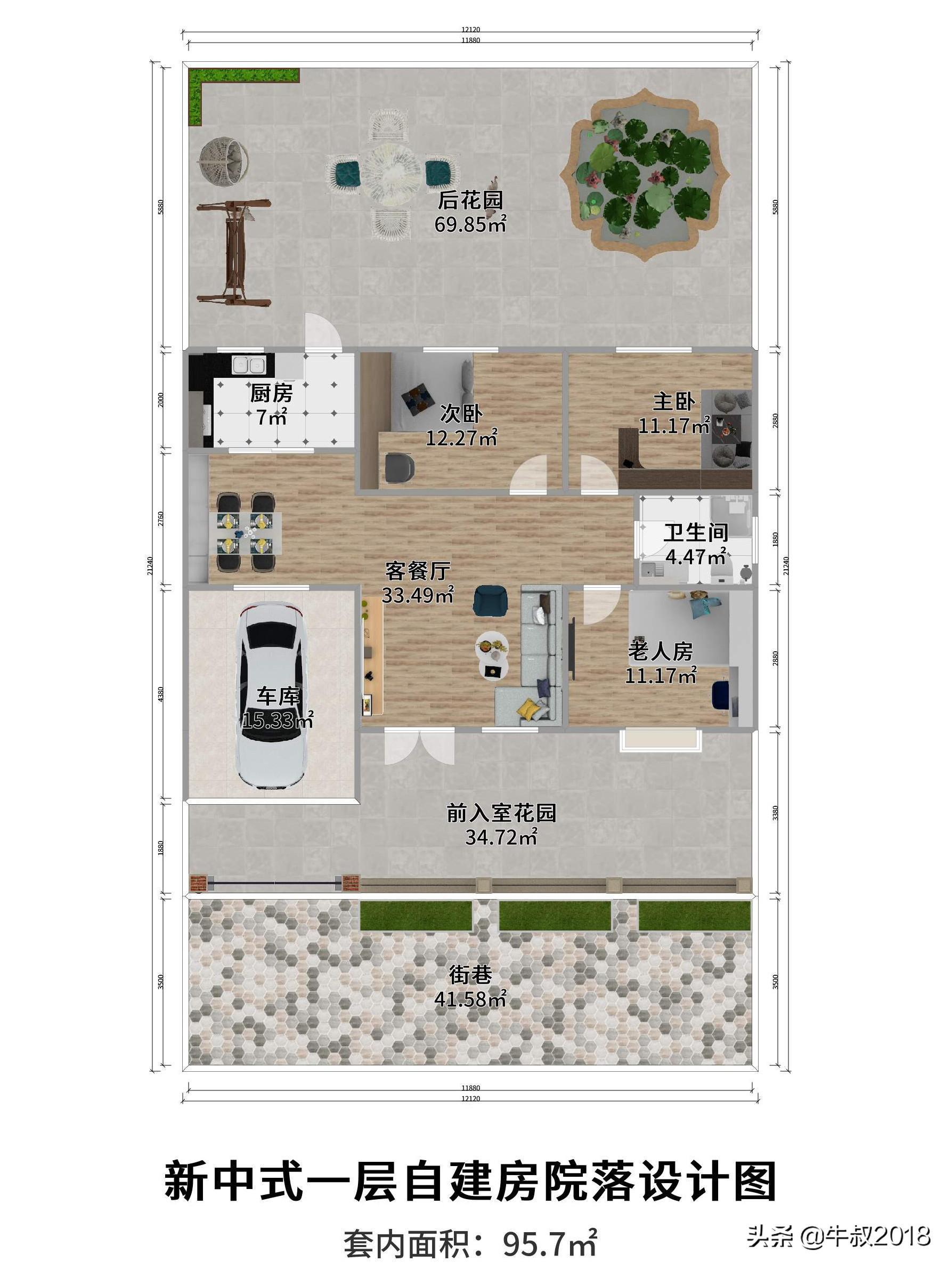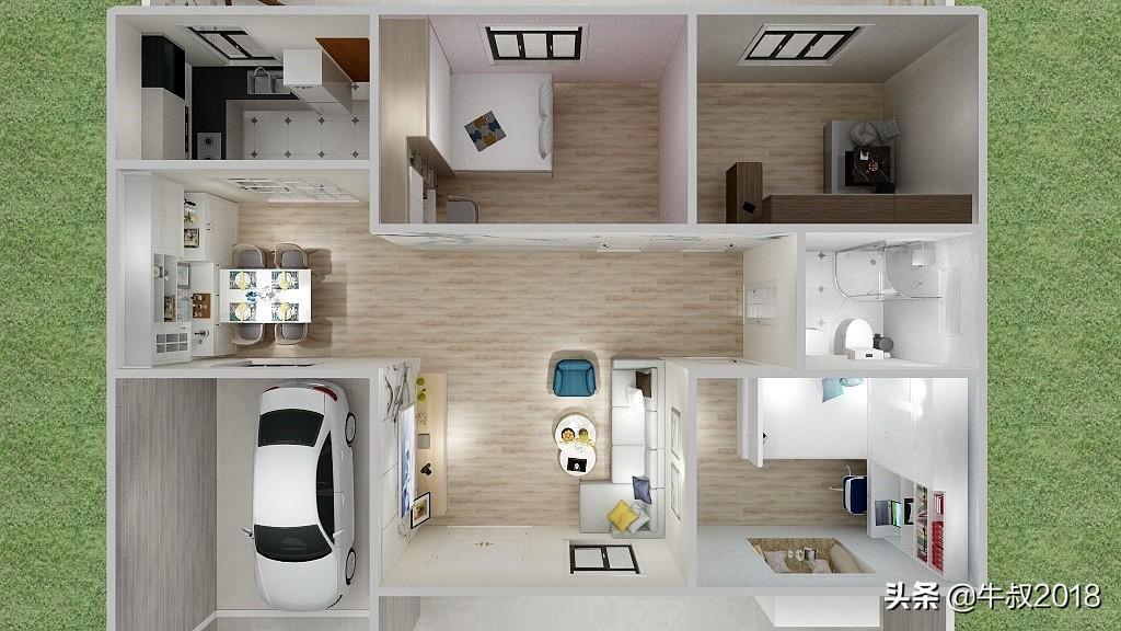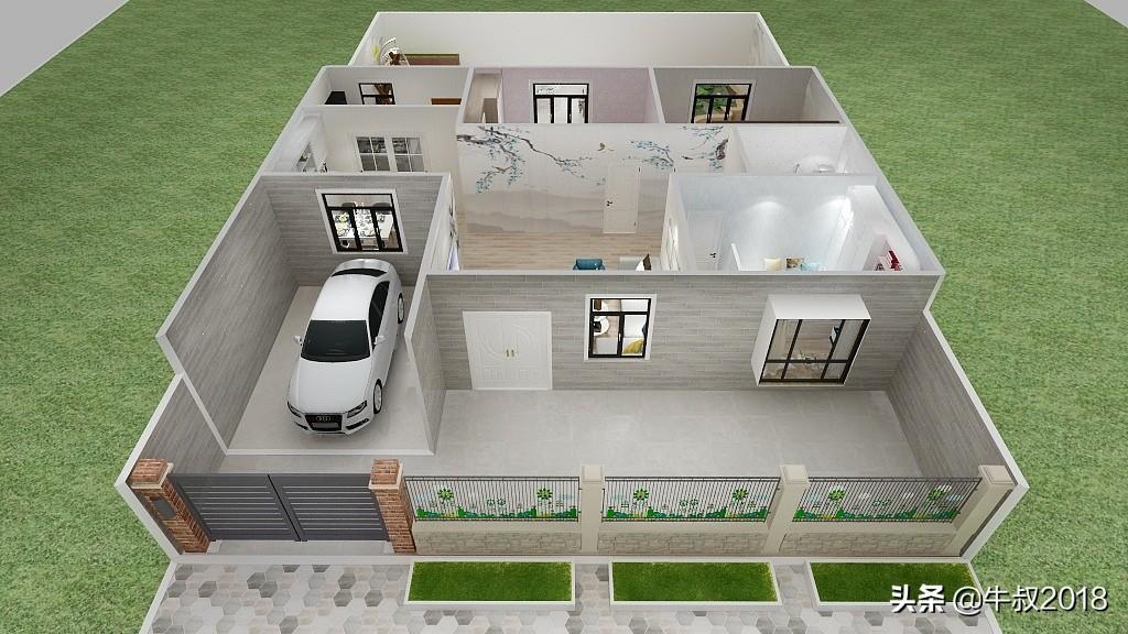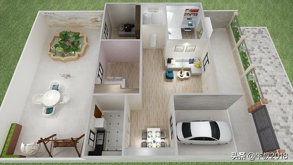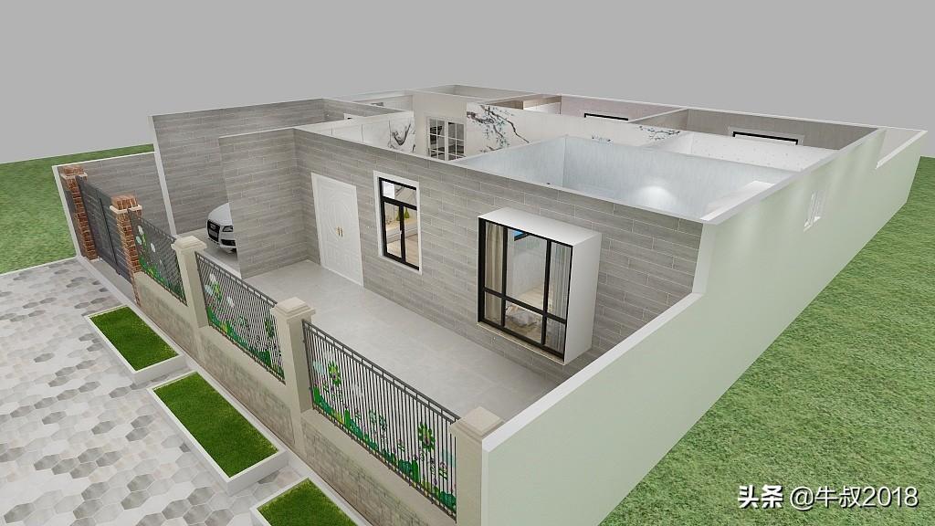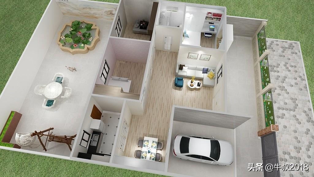 大家好,我是牛叔,我又来了,今天做了一个农家院的设计图,很适合北方乡下农村建养老房,一层的设计,三室两厅一厨一卫,有车库带前后院子,面积不大,布局很紧凑,节约土地,又节省成本,适合资金紧张,又想给父母建新房的朋友。房屋占地面积仅80㎡,加上车库95平方米,不需要车库的朋友可以直接把车库改建成卧室,马上变成四居室,在农村肯定也是够老人孩子住的。