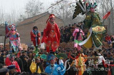 30.宁陵县的民俗文化-肘歌。北宋时期就有的肘歌自清朝从山西传入宁陵县南关后,至今已有近300的历史。目前,宁陵县南关肘歌是豫东一带唯一的一个肘歌会,去年,这支表演队伍曾在华商文化节上精装盛演。通俗讲,肘歌就是一人用肘举着一个小孩,表演者为成人和4岁到6岁的儿童。成人拿着剑、枪、葫芦等,肩上站立一儿童,摆出各种造型给人一种神秘莫测的感觉。随着锣鼓的节奏,肘歌队不断变换着队形,远远看去,像一队舞动着的戏装人物从人群的头顶上走过去,很受群众的喜爱。农历二月初二这天,宁陵县乔楼乡三张村庙会上的肘歌表演成了焦点,十里八村的男女老少争相观看。