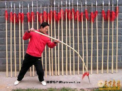 21.宁陵县的特产-宁陵白腊杆。白蜡树别名:青榔木、白荆树 ,白蜡树属木樨科。通体洁白如玉、坚而不硬、柔而不折,杆身可弯曲到180度不劈裂,柔韧性强,自身纤维密度稠,有较强的自然拉力,在干燥的地方不劈裂,在潮湿的地方不变形,其弹性、韧性是其它木质不可比拟的,是加工武术器材及各种工具的理想天然原材料,深受国内外武术爱好者青睐。使用大铁槽水煮,去皮晾干整形即可。