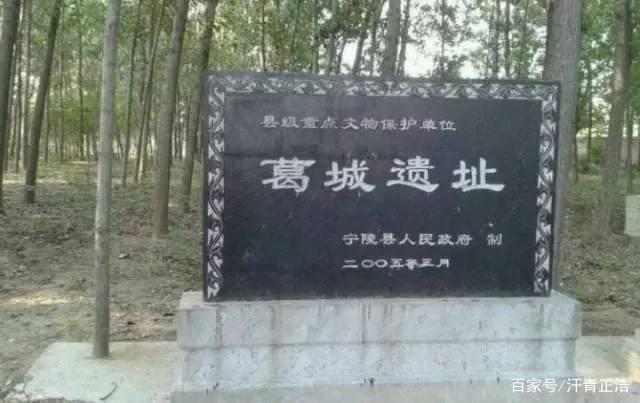 10.宁陵县的文物古迹-葛伯屯遗址。是宁陵县石桥乡的一个古遗址,是商汤时期的古遗迹。葛伯屯遗址位于宁陵县石桥乡余庄寨村北,距县城11公里。相传商汤时因葛族伯爵性情高傲,对上祖不行祭祀之礼,汤质问时,葛伯以无牛羊为由,汤便派人送去牛羊,葛伯杀而食之,仍不祭祀,汤再质问,葛伯又以无黍稷应付。葛伯便命人哄抢食物,有幼童拒劫被杀。汤大怒,出兵灭了葛国。被杀童子之墓为童饷堌堆。《史记》载:“汤征诸侯,葛伯不祀,汤始伐之”。葛城遗址前有石碑一座,正面书"葛城遗址",背面是"葛城碑记":"葛城为夏商周时葛国(俗称葛伯国)都城,遗址南北五百米,东西一百米。上古此地多葛,其有裹腹、蔽体、祛病之功用,特以葛名地。......此地为葛、葛伯、诸葛三姓祖籍地。