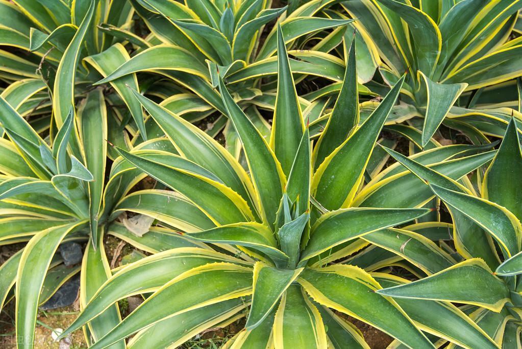 石蒜科龙舌兰属多年生常绿大型草本植物,南方城市园林景观中常见,北方多植于室内。主要观叶,有些品种每年或者隔年开花,有些品种只开花结果一次,之后便死亡。比较常见的有金边和银边品种。