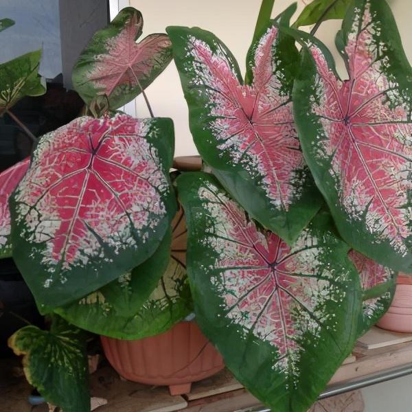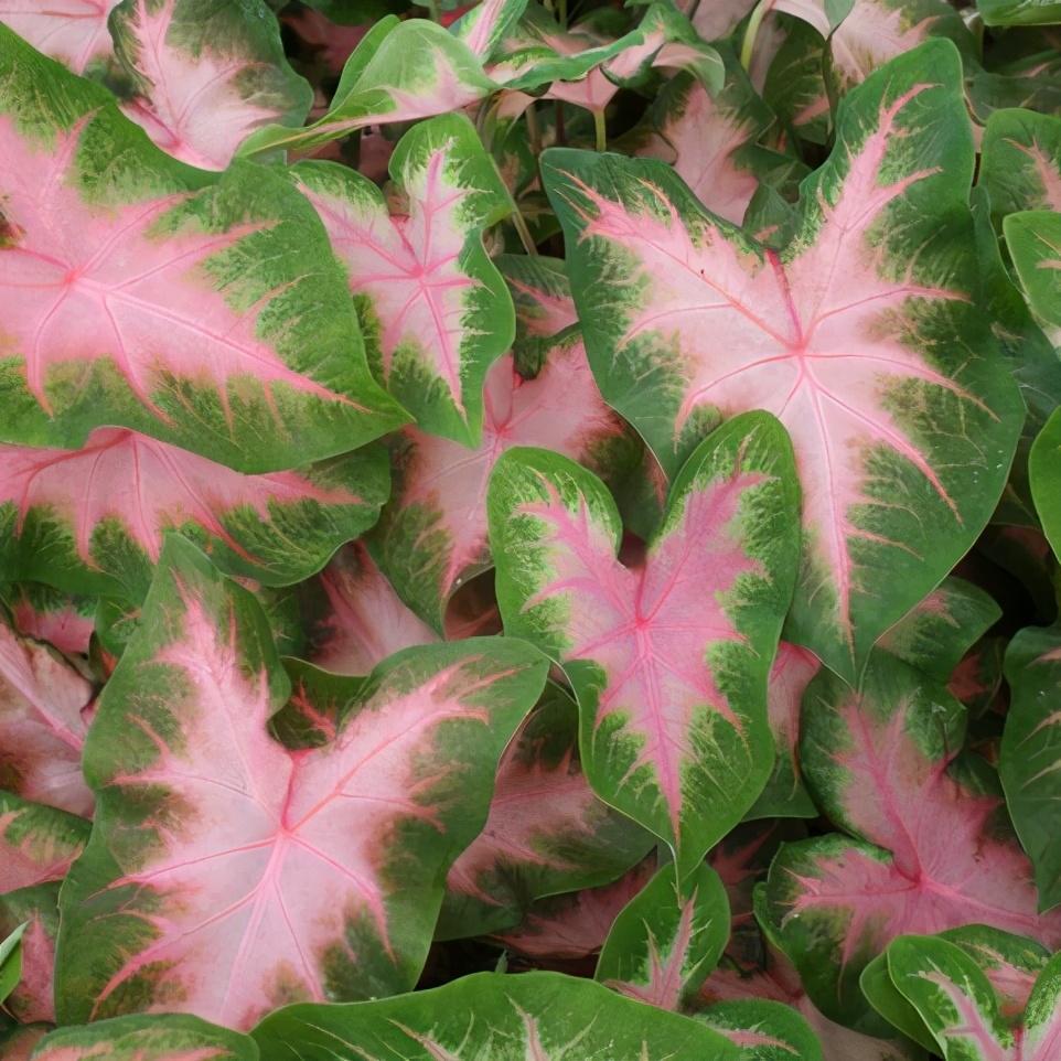 又名五彩芋,两色芋,天南星科五彩芋属多年生常绿草本植物。叶盾状箭形或心形,色泽美丽,变种极多。
