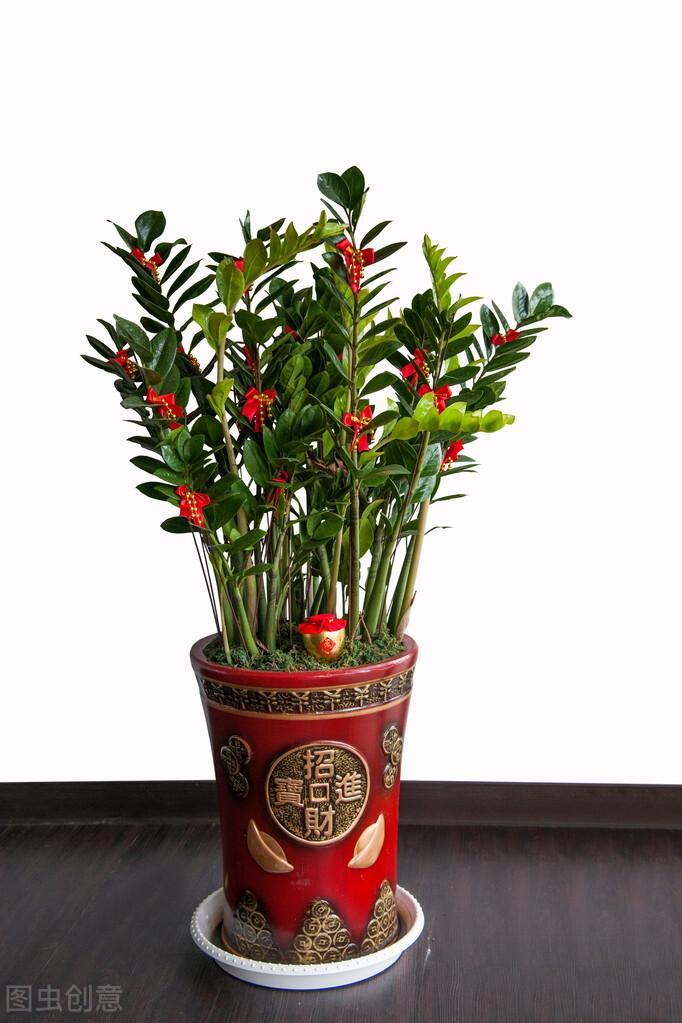 学名雪铁芋,其新抽的羽状复叶几乎每次都是2枚,一长一短、一粗一细,故又有“龙凤木”之别称,并象征寓意:招财进宝、荣华富贵。