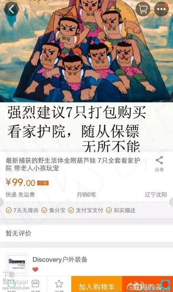 其次,小编在淘宝网上搜索到了“葫芦娃”,链接上显示“葫芦娃,活的,会隐身,2元包邮”,但同时注明“娱乐专用,没有实物,幻想葫芦娃宠物,本品只是吐槽评论,患有先天性幽默细胞缺失症的人勿拍!”可见,这样的商家是出于娱乐而非非法占有的目的,告知了商品的真实状况,没有实施欺骗行为。而且葫芦娃是我国经典的动画形象,作为有正常行为能力的成年人应该能够读懂卖家告示的含义,知道没有葫芦娃这种实物存在,因此也不会产生错误认识,因此以这种方式销售“活体葫芦娃”不符合诈骗罪的犯罪构成。