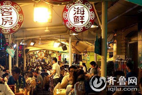 “哈啤酒吃蛤蜊”已经成了来青岛游玩的一种标配。邻近青岛啤酒厂的登州路啤酒街占尽“近水楼台先得月”的优势,入夜,不但是青岛“土著”,天南海北的游客也慕名来这里“侃大山、哈啤酒、吃烤肉”。