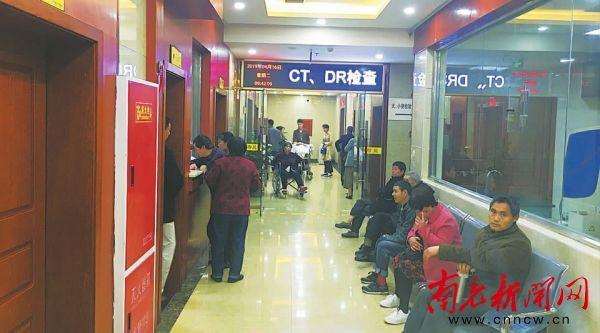 进入该医院门诊综合大楼后, 记者根据标志牌的指示, 来到位于负一楼专门做CT、DR检查的区域。 通过对比,发现网友“rnrnrnrn”所发的图片应该就是在这里拍摄的。此时,前来这个区域的病人及病人家属比较多,在座椅上,坐满了等待就诊的病人。