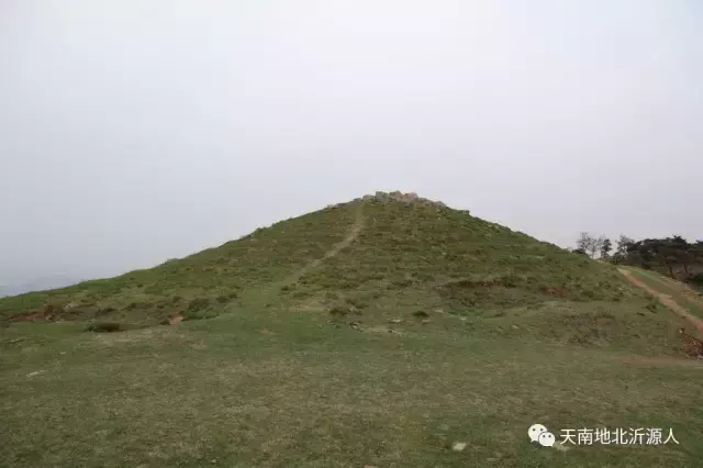在山顶的中部,平地上有一隆起的山包,周长约300米,垂直高度约10米,圆锥形酷似坟状,由石灰石和白色砂土岩构成。坟状的山包上无任何乔木和灌木,只有矮矮的细草在生长着,包的顶部有几块比较大的石灰岩石,别无其他。但墓的周围有石砌的围墙,现已倒塌,遗迹却非常鲜明。