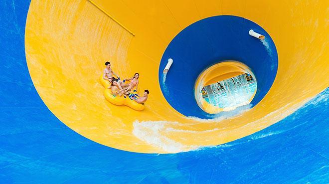 这个项目是荣获国际旅游行业「金票奖—最佳新项目」的滑道,四人坐在橡皮艇上,随着洪水的力量一次又一次被拱上喇叭圈道,大幅度地旋转,刺激到差点飞出去,耳膜也差点被周围人的尖叫声冲破!