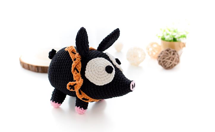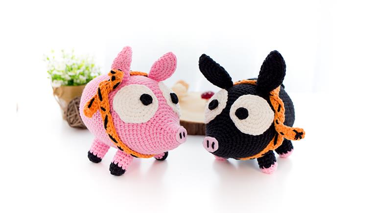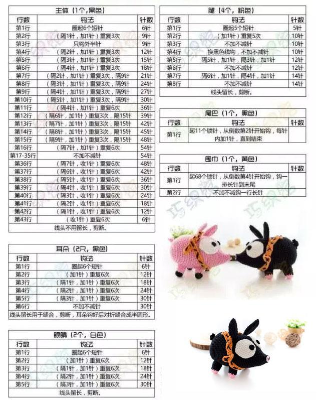 钩针编织教程:呆萌的小P猪,钩一对摆家里太吸睛了,个个说好看!
