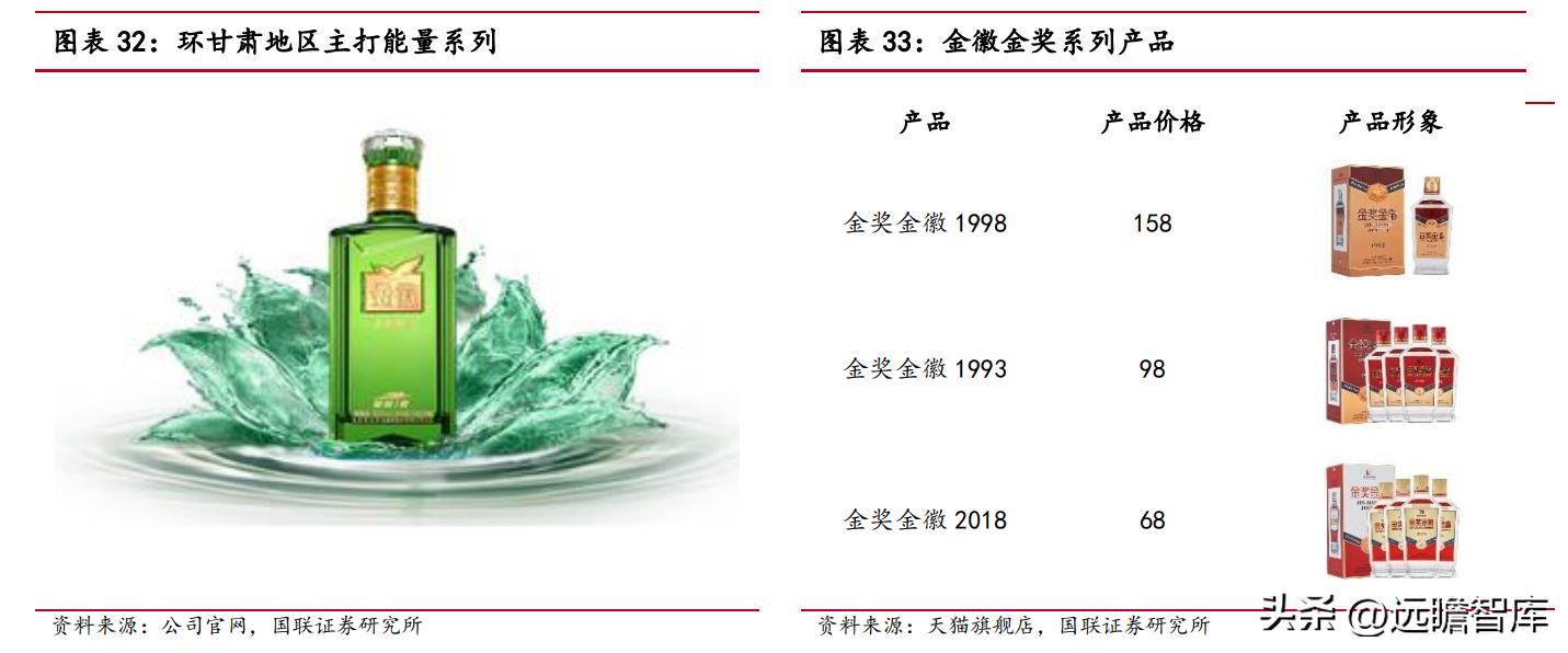 产品方面,金徽酒推出三个系列全面布局,精准覆盖各价格带,正能量系列主打次高端价位带,年份系列覆盖高端价位带,今年新上市的金奖系列布局百元价位带,专攻县级市场。