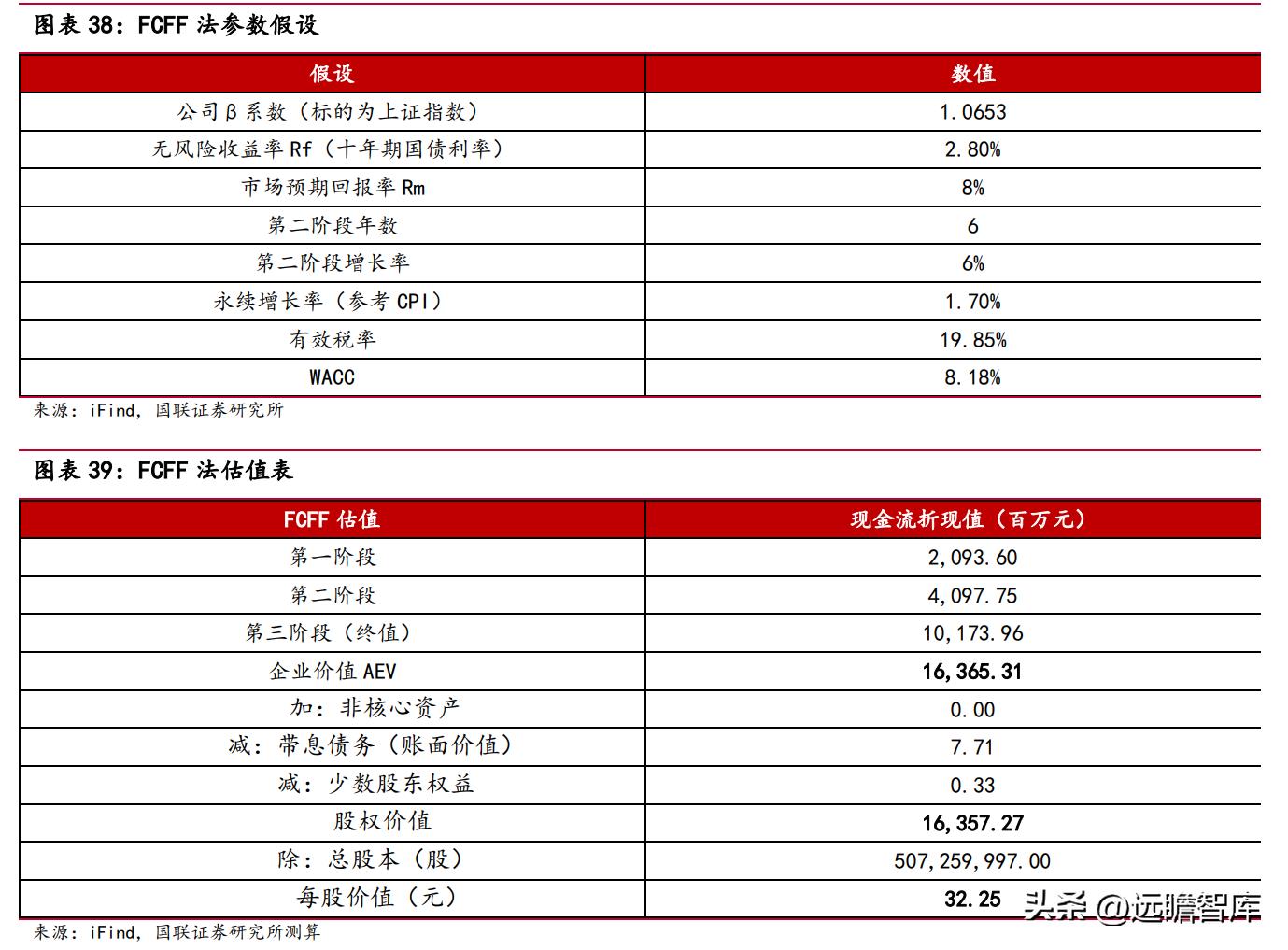 绝对估值:采用 FCFF 法对公司股权价值进行估算,得出每股价值为 32.25 元。敏感性分析显示,若折现率和永续增长率同比变化±10%,则每股价值变动范围为 28.22-37.25 元。