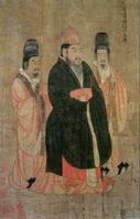 大隋世祖明皇帝杨广,隋朝第二任皇帝,隋文帝次子,母独孤皇后。581年封晋王,589年任行军元帅统兵伐陈,600年立为太子。604年即皇帝位,年号大业,在位14年。《隋书·世祖本纪》中有记载隋炀帝:“上美姿仪,少敏慧。”政绩和暴政都很突出,有人拿商纣王、秦始皇等与他相比,并称暴君。即位之后,对于国政有恢宏的抱负,并且戮力付诸实现。在位期间修建大运河、大兴城和东都洛阳城,开拓疆土畅通丝绸之路,开创科举,三征高句丽等。大运河和科举影响后世千年。