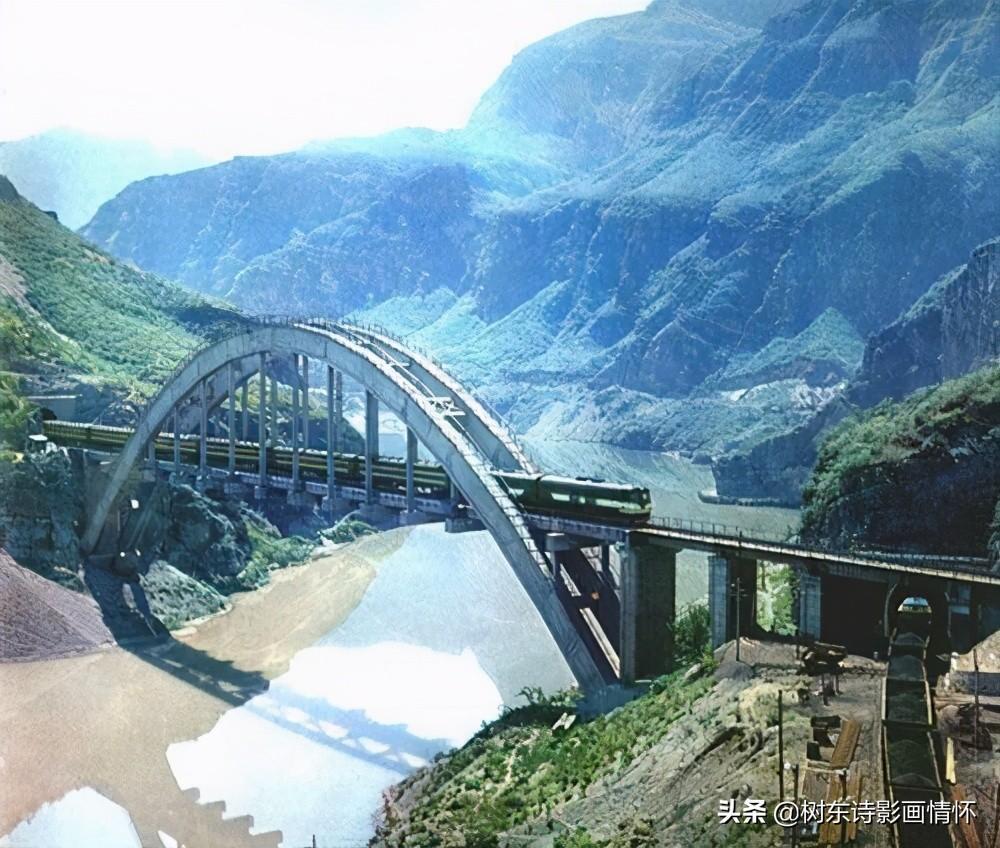 一线天桥,在四川省境内的大渡河畔,有一条古老凉山分裂成的长达几里的大裂缝,名叫老昌沟。沟的两边平行相峙,山壁陡峭,直插云天,沟深达200余米,宽仅50余米,沟里云飘雾绕,从沟底仰望天空,好像一条蓝色的绳索悬在空中,人称“一线天”。1964年修建成昆铁路时,桥梁建设者们在这里修建了一座中国跨度最大的铁路石拱桥。