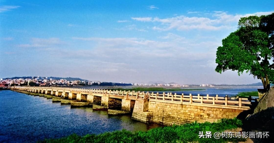 泉州洛阳桥,又称万安桥,是古代汉族桥梁建筑的杰作。位于福建泉州东北洛阳江上,宋皇祐五年(1053年)兴建,嘉祐四年(1059年)建成。历时六年。桥长八百三十四米,宽七米,有桥墩四十六座,全部用巨大石块砌成。结构坚固,造型美观,具有极高的桥梁工程技术和艺术水平,体现了古代汉族劳动人民的高度智慧。