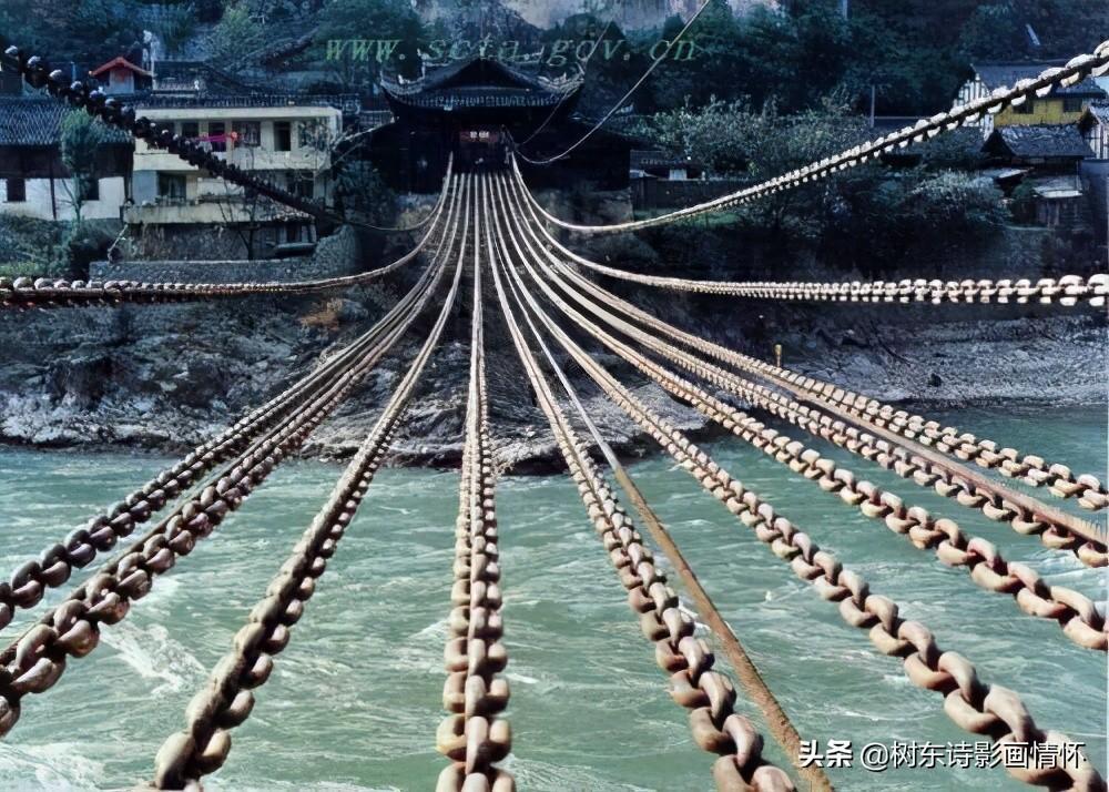 泸定桥又称铁索桥,位于四川省泸定县大渡河上,相传康熙帝统一中国后,为加强川藏地区的文化经济交流而御批修建此桥,并在桥头立御牌。该桥始建于1705年,建成于1706年,是中国古代桥梁建筑的杰作,是国务院首批公布的全国重点文物保护单位。