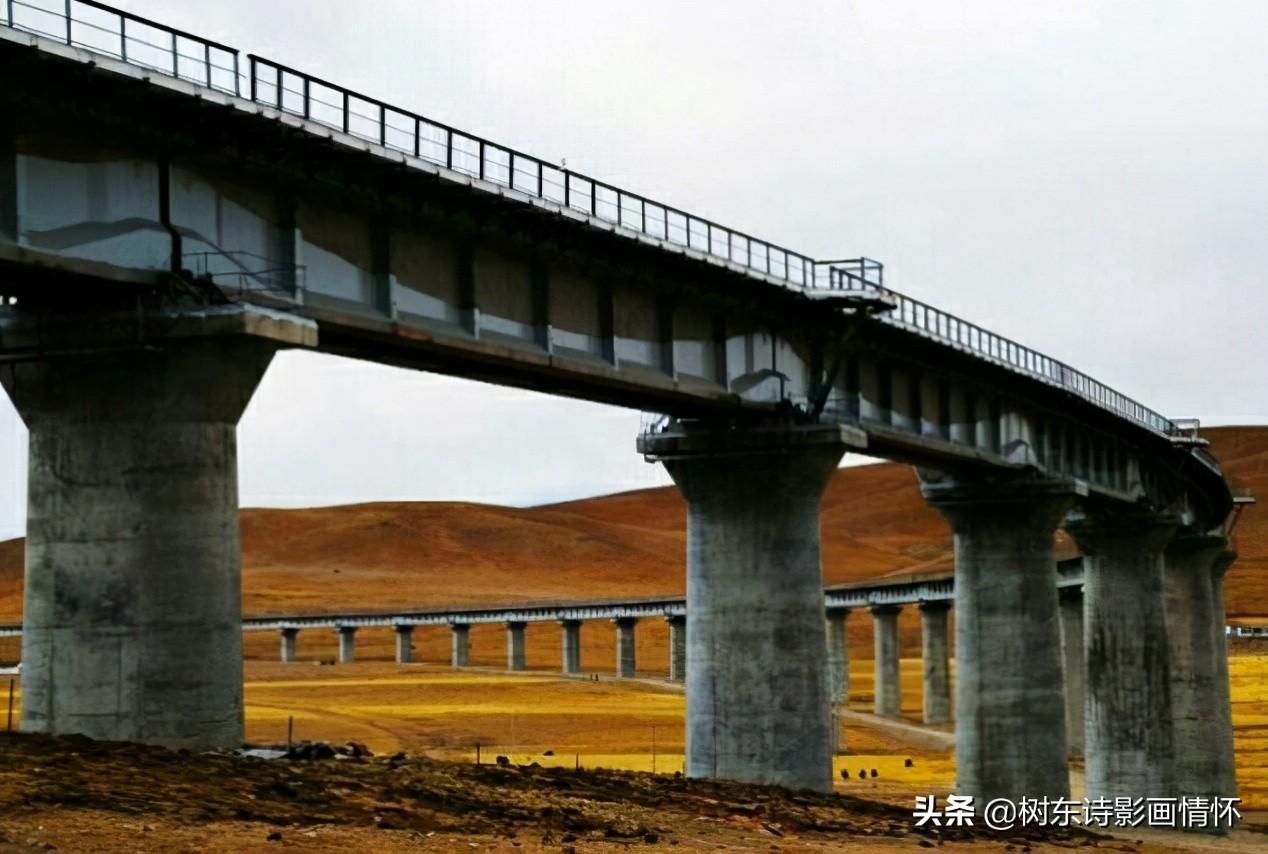 青藏铁路那曲特大桥位于那曲镇附近,海拔4530米,全长1950.88米,是藏北草原第一长桥,全桥由59孔32米梁组成,最高桥墩21.4米,整体呈现半圆形,技术含量高、施工难度大,是著名的以桥代路大桥。