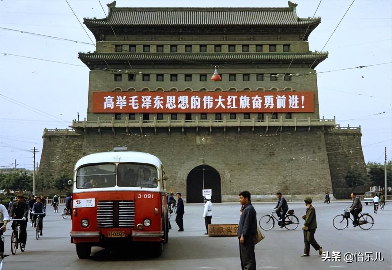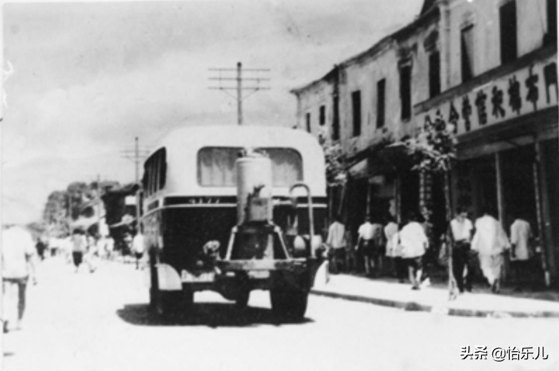 1960年,车顶装着“煤气包”的公共汽车在北京街头行驶