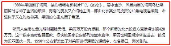 1988年,梁丽在海南拍戏时,有个在影视圈做投资的朋友找上门。