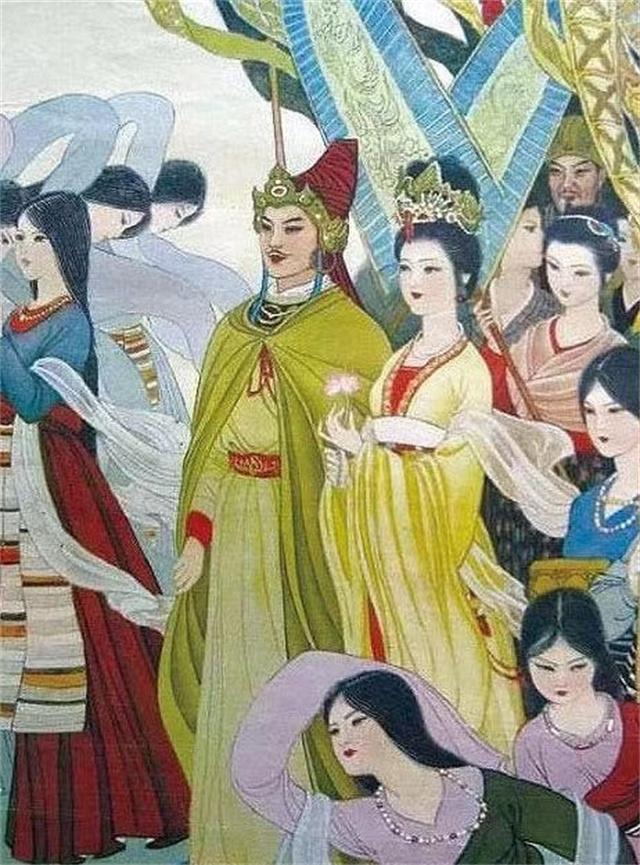 最后是让文成公主和几百名侍女,一样穿着,站在一起,让他们从中间选出文成公主。