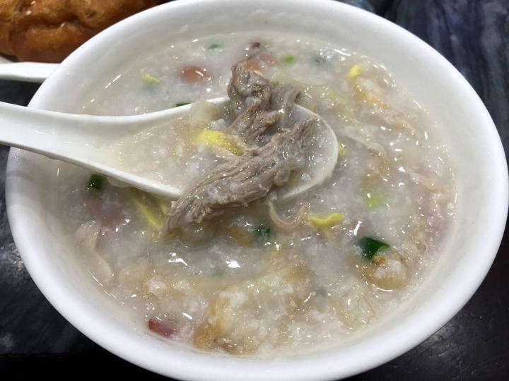 其实就是猪杂粥,加入了猪肝、猪腰、猪肠等。食材都处理的很干净,没有异味。爽嫩的猪肝、猪腰和滑嫩的猪肠,绝对是内脏爱好者们不容错过的美味。