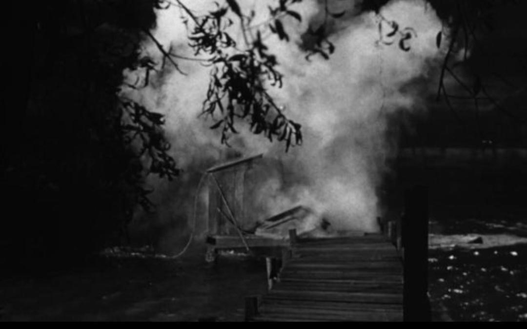 罗达拿着码头上的网子在水里试探,结果一阵惊雷过后,正在捞奖章的罗达被雷劈中身亡。