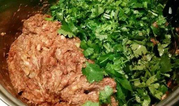 3.最后加入香菜末搅拌均匀,香菜饺子馅即成。