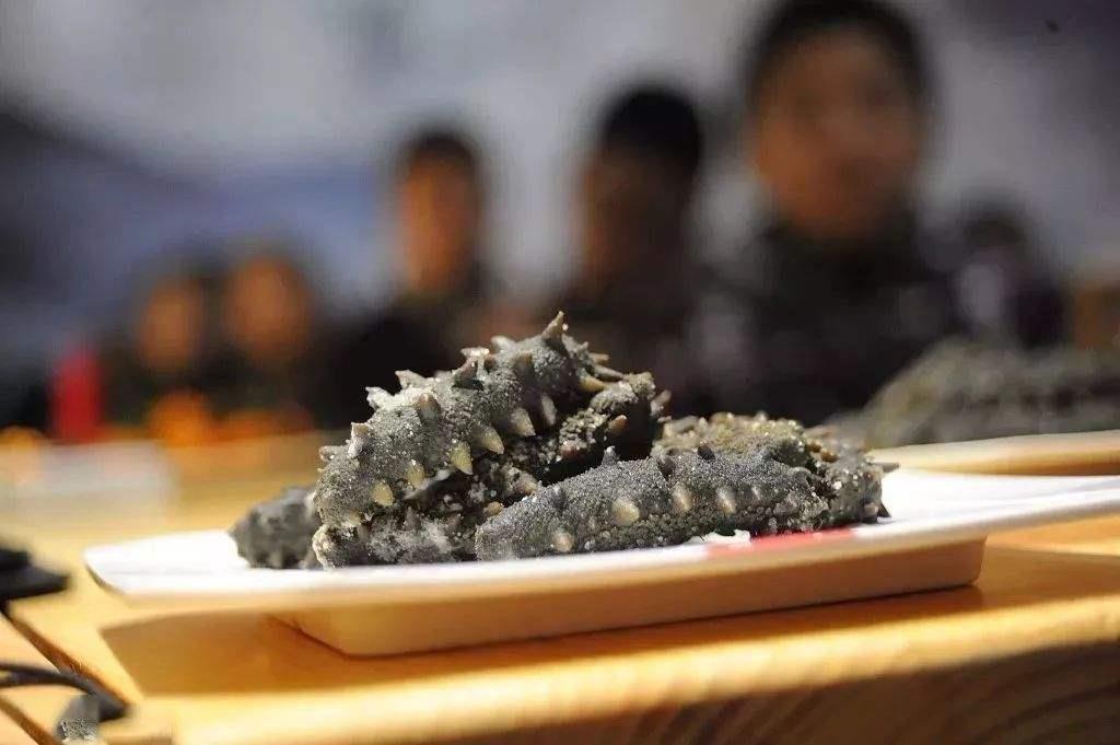 2.水发海参入锅,加姜片、葱节、料酒、鸡精、高汤煨入味,捞起切成细粒;