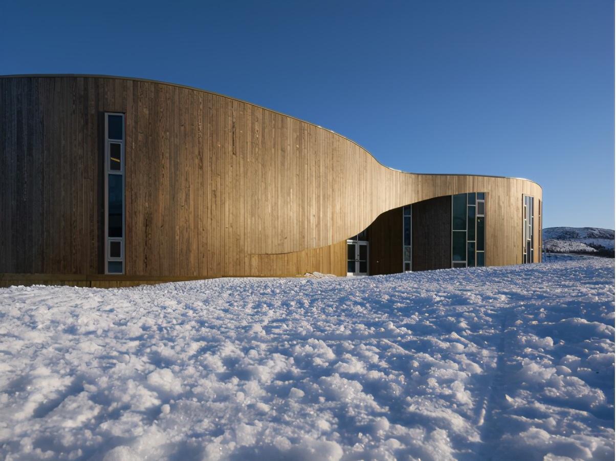 加拿大北部地区的文化空间非常稀缺,努纳特西亚武特地区尤其如此。在过去的十年里,加拿大最北部的许多社区都增加了基础设施,但这个位于拉布拉多半岛的自治领地,最近才在其首府奈恩开设了Illusuak文化中心,由Saunders Studio建造。这座蜿蜒的Kebony木质外衣结构是一个新的社区纽带,中心占地1200㎡,内部包括一个礼堂、咖啡馆、手工艺商店、工作室、剧院和五个常设展览,它是整个北方文化复兴的物质灯塔。