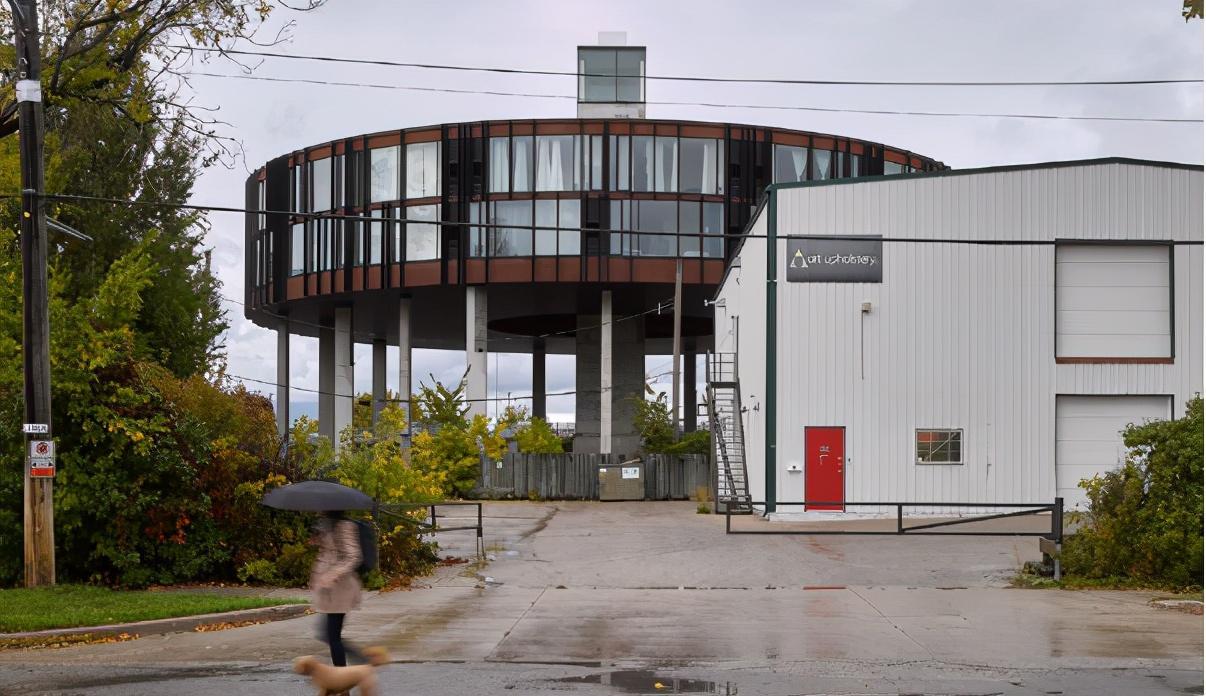 62M,由创新公司5468796建筑所开发,是一栋圆形的两层建筑,建在20根雕塑柱上,由40个预制楔形单元组成两层。它已经成为城市天空中一个新颖的新地标。设计师解释说独特的形状是为了解决场地和预算的问题,“我们一开始很讨厌这个想法。谁会提出在高跷上建一个圆形的东西?不过我们研究得越多,就觉得它越有意义。”