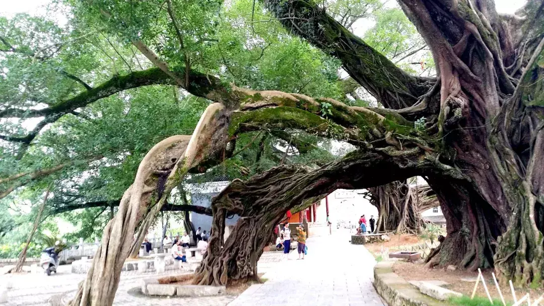 榕津千年古榕群是由八株龄逾千年的古榕所组成,尤其是北街口的连理古榕和东街口的墙上古榕最有特色,实为世所罕见。连理古榕不但古朴苍劲,枝叶繁茂,更令人惊叹的是其发育茁壮的气根酷似树干,它与枝、干相连形成了带有几个拱门(拱门下可通行中型汽车)的奇特组合群体,使人大开眼界,赞不绝口。