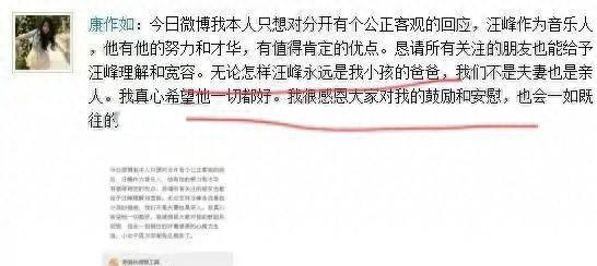 当康作如和汪峰离婚时,她也曾经说过“离婚后,与汪峰像亲人一样相处,共同抚养孩子……”这样的话。