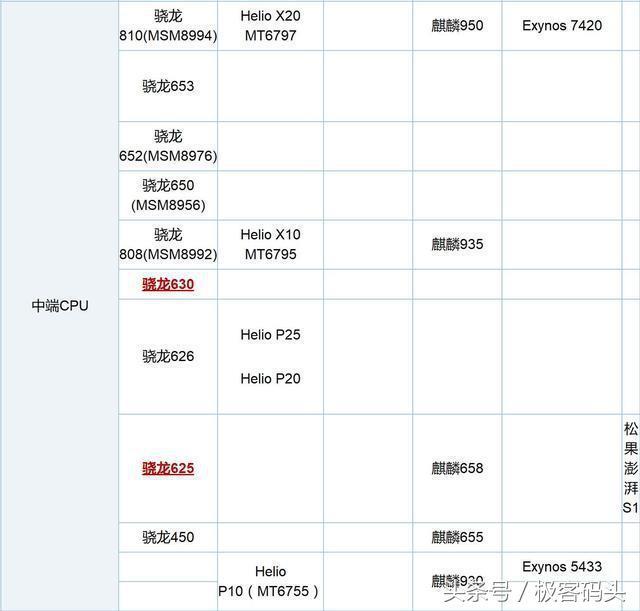 而骁龙630作为骁龙625/626的接班人,是否对得起“一代神U”这个称号呢。我们来看一下这两颗处理器的主要参数对比。