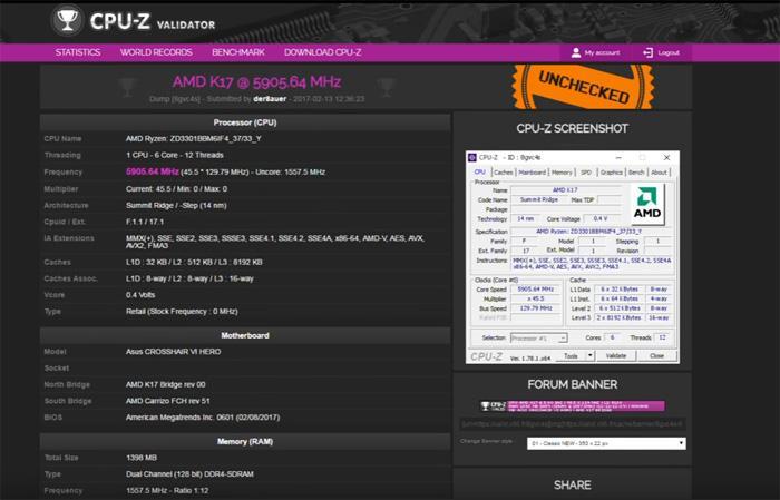 Ryzen 5 1600X处理器频率超到了5.9GHz,超过了Ryzen 7 1800X