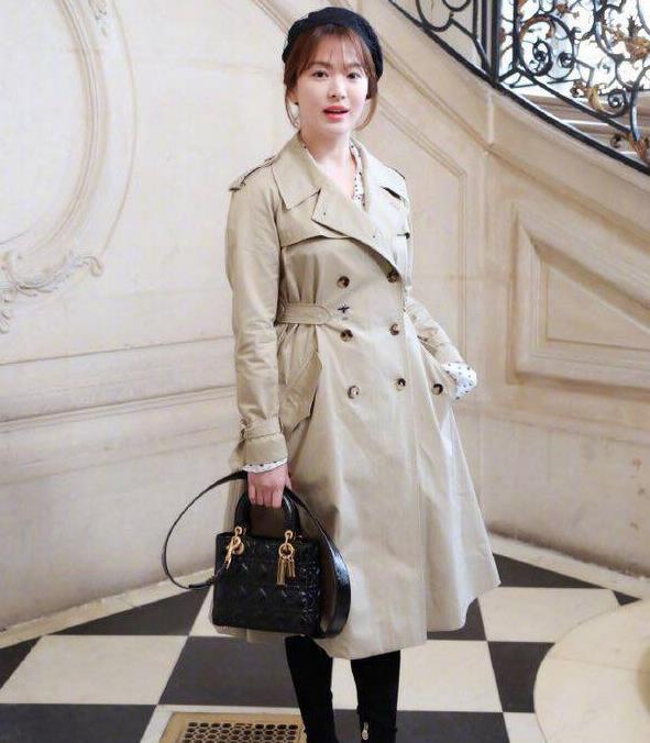 看的出来,婚后的宋慧乔有一点点微微发福的痕迹,果然这是嫁给爱情的样子啊,圆圆的小脸蛋看上去可爱萌萌哒,嫩嫩的肌肤吹弹可破,感觉她的脸都可以掐出水来了。搭配这一身长风衣,戴着贝雷帽,气质特别好。