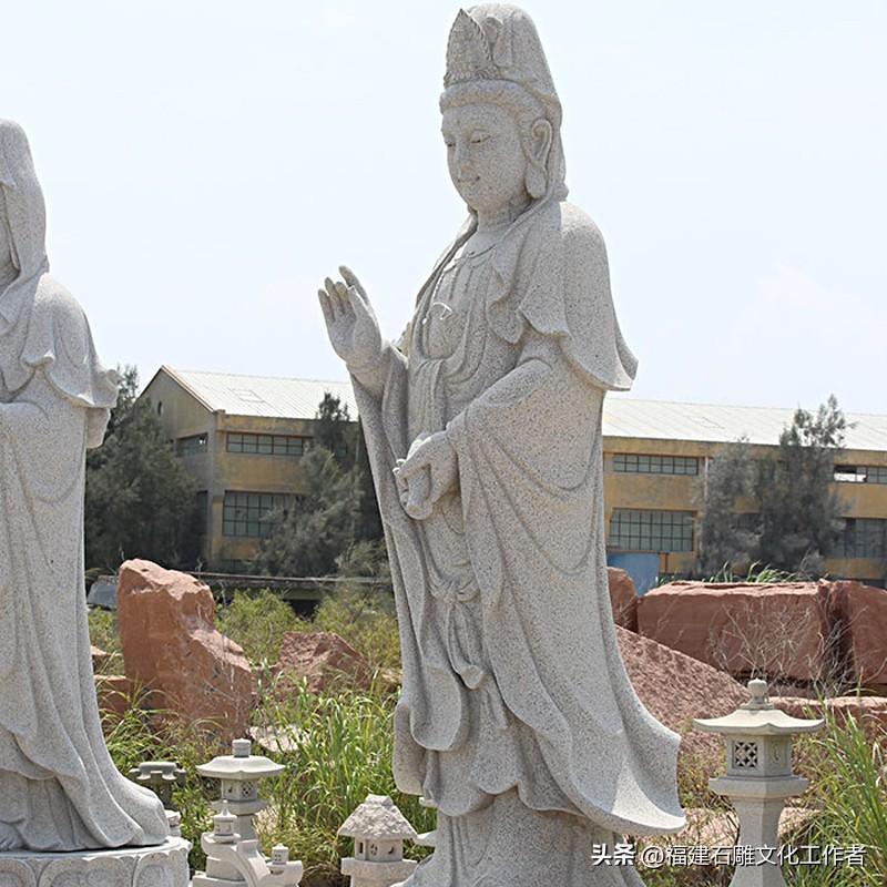 寺庙里供奉的大型石雕观音像,大多都是采用花岗岩雕刻而成。抗风化耐腐蚀的花岗岩石材,能常年适应风吹雨淋的气候考验。当人们走进寺庙遁入佛门风光,看到慈眉善目的观音石雕佛像,心中瞬间充满了敬畏之情。随着日渐浓厚的佛教信仰文化,在越来越多的佛寺禅院内,都可以看到石雕观音像的身影,它们或单独供奉,或与其它佛像共同存在,成为佛教文化中不可或缺的一部分。