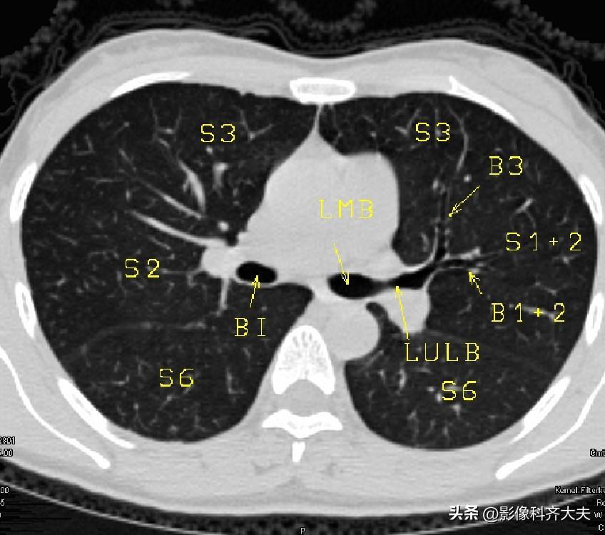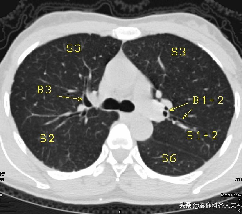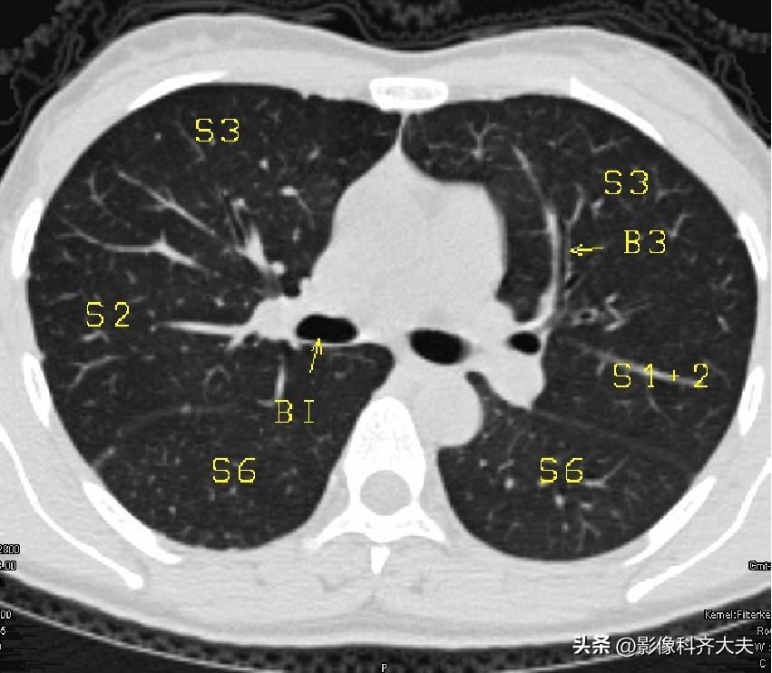 ▲B1+2:左上叶尖后段支气管B3:上叶前段支气管