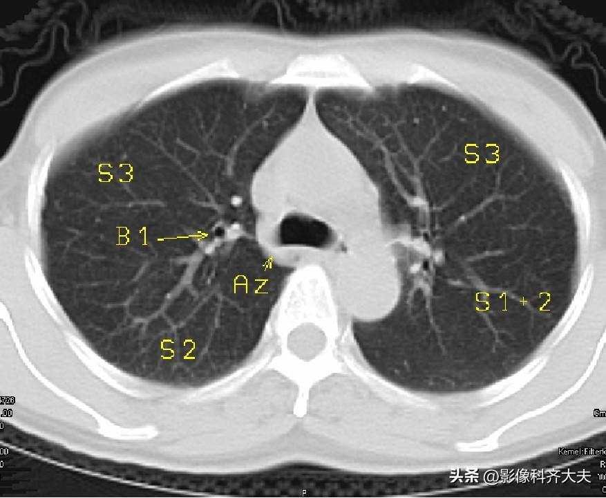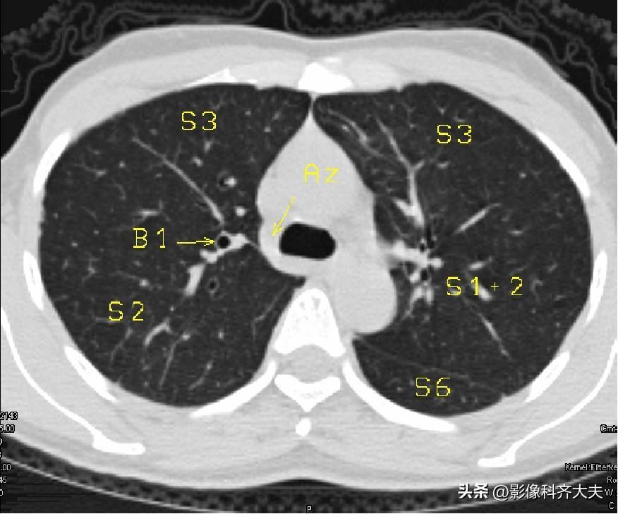 ▲Az:奇静脉弓,B1:上叶尖段支气管,S3:上叶前段