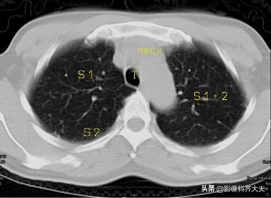 ▲ARCH :主动脉弓,S2:上叶后段,S1+2:左上叶尖后段
