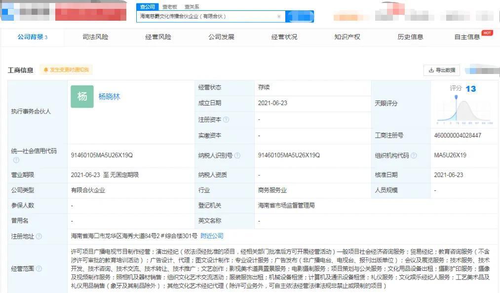 之所以说是"又",是因为这不是杨幂旗下的第一家公司,杨幂所在的嘉行传媒也有她的股份。