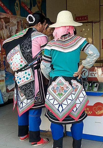 哈尼族善于用篮靛染色成衣,由于地区较广,各地服装搭配均有些不同,一般都是喜欢青色和黑色的衣服,哈尼族妇女们都喜欢戴帽子。
