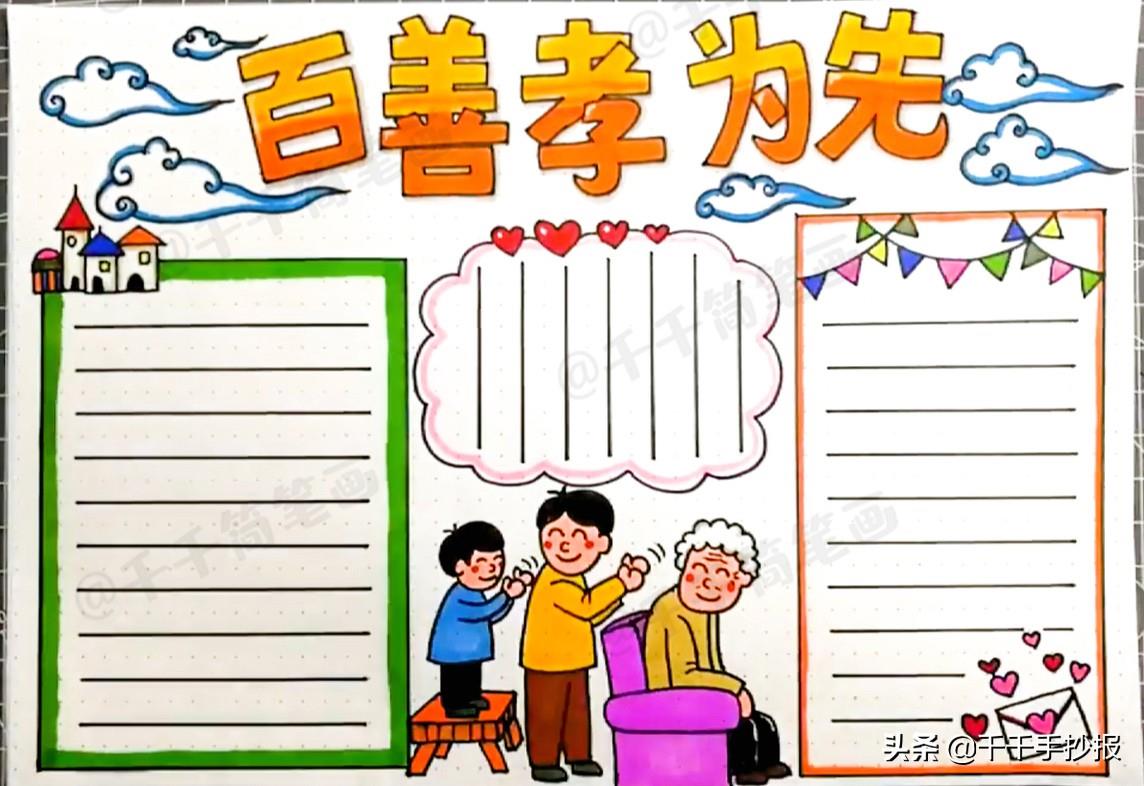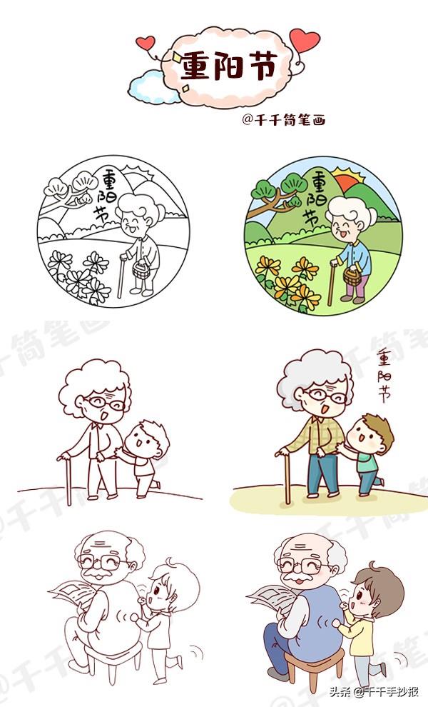 重阳节主题绘画,简单好看的尊老敬老手抄报,快给孩子收藏吧